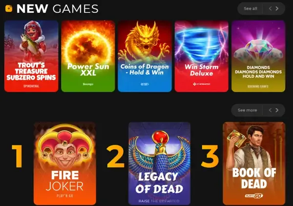 We bieden meer dan 10.000 spellen aan, waaronder slots, tafelspellen, live dealer-titels, jackpots en instant play-opties zoals crashspellen. Belangrijke aanbieders zijn onder meer Evolution, NetEnt en Play'n GO.