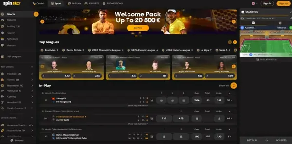 Sportweddenschappen zijn geïntegreerd in hetzelfde account, zodat je van Spinstarbet gokkasten naar sportmarkten kunt overstappen zonder nieuwe registraties. We dekken grote sporten zoals voetbal, tennis, basketbal en meer, met extra diepgang voor live-evenementen en in-play-momenten. Als je de voorkeur geeft aan snelle beslissingen, kun je met live betting weddenschappen plaatsen terwijl de wedstrijd bezig is, met odds die worden bijgewerkt naarmate de actie verandert.