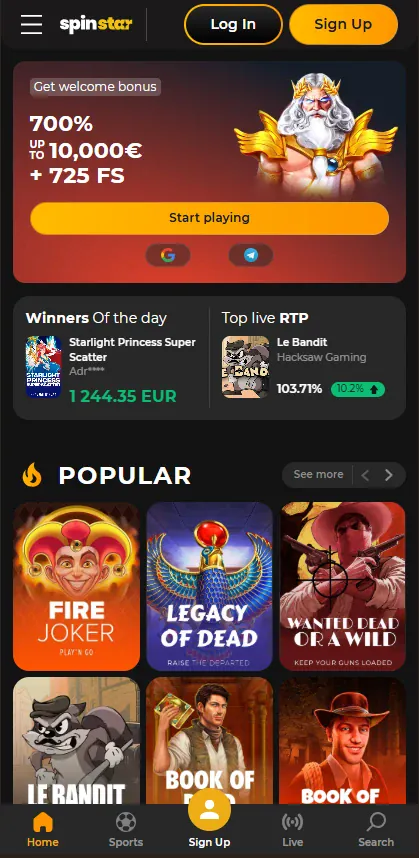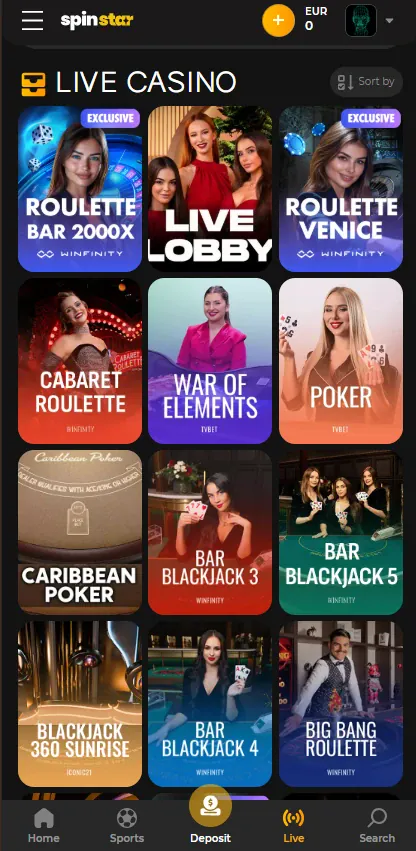 - Eenvoudig wisselen tussen categorieën zoals Spinstarbet slots, tafelspellen en live casino